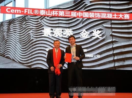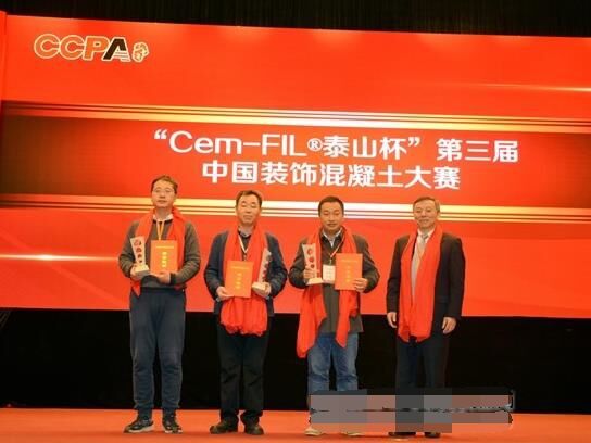 在12月7日召開的2016中國混凝土與水泥制品行業(yè)大會上,大會表彰了Cem-FIL?泰山杯第三屆中國裝飾混凝土大賽金獎項目并頒獎。