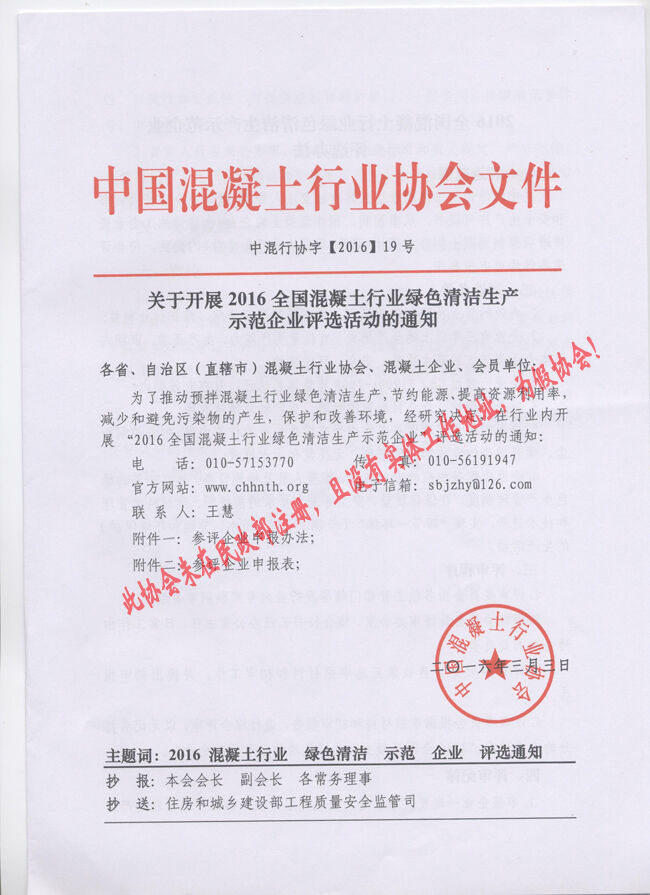 近日,有多家省市協會和有關生產企業向分會秘書處反映收到“中國混凝土行業協會”2016(16、17、18、19、20)文件開展所謂的“中國混凝土行業評選活動”的通知。