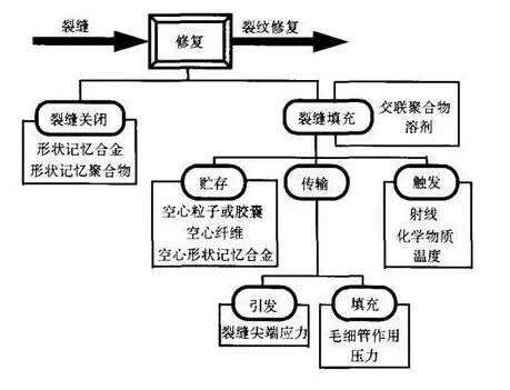 仿生自愈合法是一種新的裂縫處理方法,它模仿生物組織對受創(chuàng)傷部位自動分泌某種物質,而使創(chuàng)傷部位得到愈合的機能,在混凝土的傳統(tǒng)組分中加入某些特殊組分(如含粘結劑的液芯纖維或膠囊),在混凝土內部形成智能型仿生自愈合神經(jīng)網(wǎng)絡系統(tǒng),當混凝土出現(xiàn)裂縫時分泌出部分液芯纖維可使裂縫重新愈合。