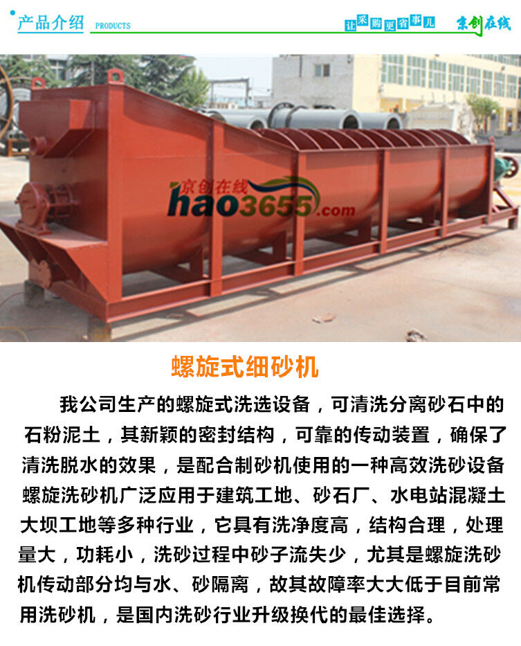 螺旋洗砂機FG系列適用于冶金、建材、水電等行業的洗選、分級、除雜等作業,用于細粒度和粗粒度物料的洗選作業。對建筑用砂、筑路用砂石猶為適宜。螺旋砂石洗選機功率消耗小、洗凈度高。密封結構好、全封閉傳動裝置、可調式堰板,確保了產品高效、耐用,清洗、脫水效果好,細粒產品保持穩定等特點。