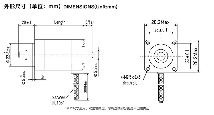 兩相1.8°混合式步進電機20系列步進電機