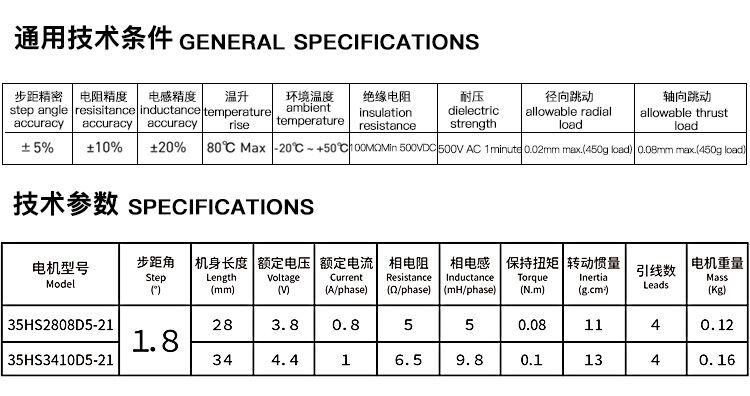 兩相1.8°混合式步進電機35系列步進電機