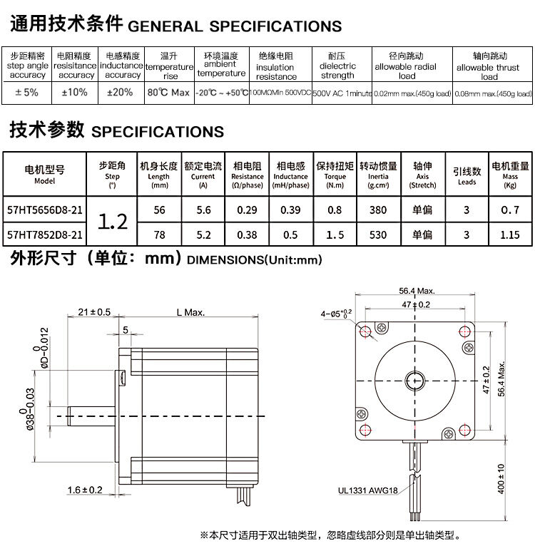 兩相1.8°混合式步進電機39系列步進電機