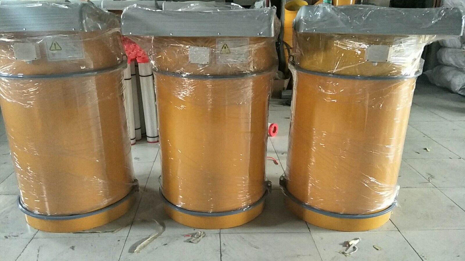 水泥倉頂除塵器是一種圓形可拆的金屬濾筒,底板上有14個嵌入圓形孔,它設有14個濾芯,扎緊在上端1個振動器的吊架上,定時震動,使濾芯阻留下來的灰塵降落在倉內。