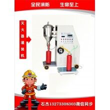 滅火器充裝設備內容干粉滅火器充裝設備的目的是為了解決上述現有技術的不足, 提供一種新型滅火器充氣裝置,充氣安全性高,使得人員在滅火器充氣過程中不直接接觸滅火器, 操作方便, 其體積小, 成本低, 并且可節省氣體,具有滅火器拆卸裝置,可適合滅火器生產廠家和維修人員的使用。 干粉滅火器充裝設備解決的技術問題所采用的技術方案是: 一種箱式防護型干粉滅火器充裝機及充氣裝置, 包括帶進氣口的充氣頭和充氣平臺, 充氣頭上設有推進裝置, 其特征是與上述的充氣平臺組成有安全箱體, 充氣平臺設在安全箱體上部,安全箱體側面設有送氣框口, 安全箱體上部的充氣平臺開設有充氣缺口, 充氣頭設在充氣缺口的一側。當要對滅火器進行充氣時,手提滅火器通過送氣框口放入安全箱體內,滅火器機頭進入充氣缺口, 充氣頭對準滅火器機頭, 推進裝置把充氣頭往滅火器機頭推進, 接口處頂緊,頂緊后,壓下滅火器壓把,然后打開充氣閥門,就開始充氣。由于滅火器瓶體位于安全箱體三個側板和充氣平臺內, 操作人員位于安全箱體的其中一個側板位置, 安全箱體為如鋼板等材料把操作人員與滅火器隔開,從而有效保護操作人員的人身安全。