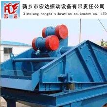 脫水篩主要技術(shù)特點(diǎn):(1)篩面成折線形,從人料端到出料端角度逐漸減小篩面根據(jù)角度不同共分五段,每兩排篩板為一個斜面,從入料端至出料端依次相差5.5°,分別為25°、19.5°、14°、8.5°和3°。在入料端傾角大,物料具有較大的拋擲強(qiáng)度和運(yùn)動速度,使物料快速分層,中部對于已分好層的物料再給以和普通篩分機(jī)相同的加速度,使細(xì)粒物料有充分的機(jī)會透篩,單位篩面透篩能力提高,使篩上物料層厚度從人料端到排料端基本保持不變。 (2)篩板采用聚氨酯和不銹鋼篩條制作,篩板四周用聚氨酯材料,具有耐磨性能好,噪聲低的特點(diǎn)。中間為不銹鋼篩條,與其他材質(zhì)相比具有強(qiáng)度大、磨以及開孔率高的特點(diǎn)。 (3)篩板安裝結(jié)構(gòu)簡單.篩板與篩板之間沒有螺栓連接,靠聚氨酯材料的塑性緊密配合,篩板不易松動,減少了事故發(fā)生。篩板軌座與支撐梁之間有保護(hù)蓋條,使軌座下螺栓不會受煤水的腐蝕和磨損 (4)激振器采用整體的箱式激振器.激振器安裝在篩箱上部的大梁上,箱體內(nèi)裝有主動軸和從動軸,軸上各有一對重量相同的偏心塊,通過齒輪兩根軸做同步反向回轉(zhuǎn),使偏心塊回轉(zhuǎn),產(chǎn)生離心力形成激振力。偏心塊成對的布置在激振器箱體外面,使箱內(nèi)結(jié)構(gòu)緊湊,齒輪對安裝在箱體內(nèi),潤滑可靠,傳動平穩(wěn)。 (5)傳動系統(tǒng)簡單:傳動系統(tǒng)由一臺45 kw電動機(jī),通過三條V帶傳動給萬向連接軸,萬向連接軸由連接輪與激振器接,從而消除因振動篩振動造成的連接長度及軸線角度的變化(6)篩面兩側(cè)的保護(hù)蓋條緊固結(jié)構(gòu)簡單粗聯(lián)結(jié)牢固篩面兩側(cè)保護(hù)蓋條兩個接觸面為斜面,接觸面積大,上面為壓板不易松動。