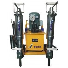 液壓劈裂機由泵站和分裂器兩大部分組成,工作時由泵站輸出的高壓油驅動油缸,產生巨大推力,驅動楔塊組中的中間楔塊向前伸出,將反向楔塊向兩邊撐開,即可使被分裂物體分裂。