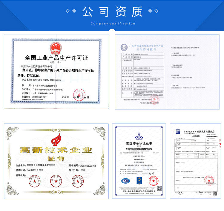東莞市久佳防腐設備有限公司是國內前沿的防腐環保設備制造商之一,竭誠以專業的防腐技術為各類石化、環保、釀造、醫藥、食品等行業提供防腐儲存運輸設備。公司擁有各類先進的生產設備與檢測儀器。加工工藝成熟,檢測手段先進,經過多年不斷創新努力,集生產、銷售各類鋼襯塑儲罐、鋼襯塑反應釜、防腐儲罐、全塑儲罐、PE儲罐、離子交換柱等系列設備于一體。設備品質得到廣大合作企業高度好評.設備技術合作開發愈加密切。