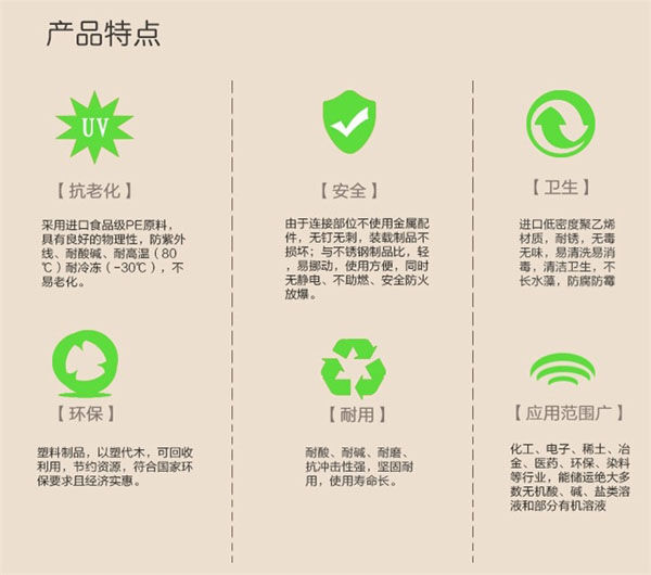 2、久佳儲(chǔ)罐采用進(jìn)口韓國(guó)進(jìn)口644線性低密度(LLDPE)原料,韌性和強(qiáng)度均優(yōu)于其他原料,符合中國(guó)食品衛(wèi)生檢測(cè)標(biāo)準(zhǔn)。可提供合格證、檢測(cè)報(bào)告等文件