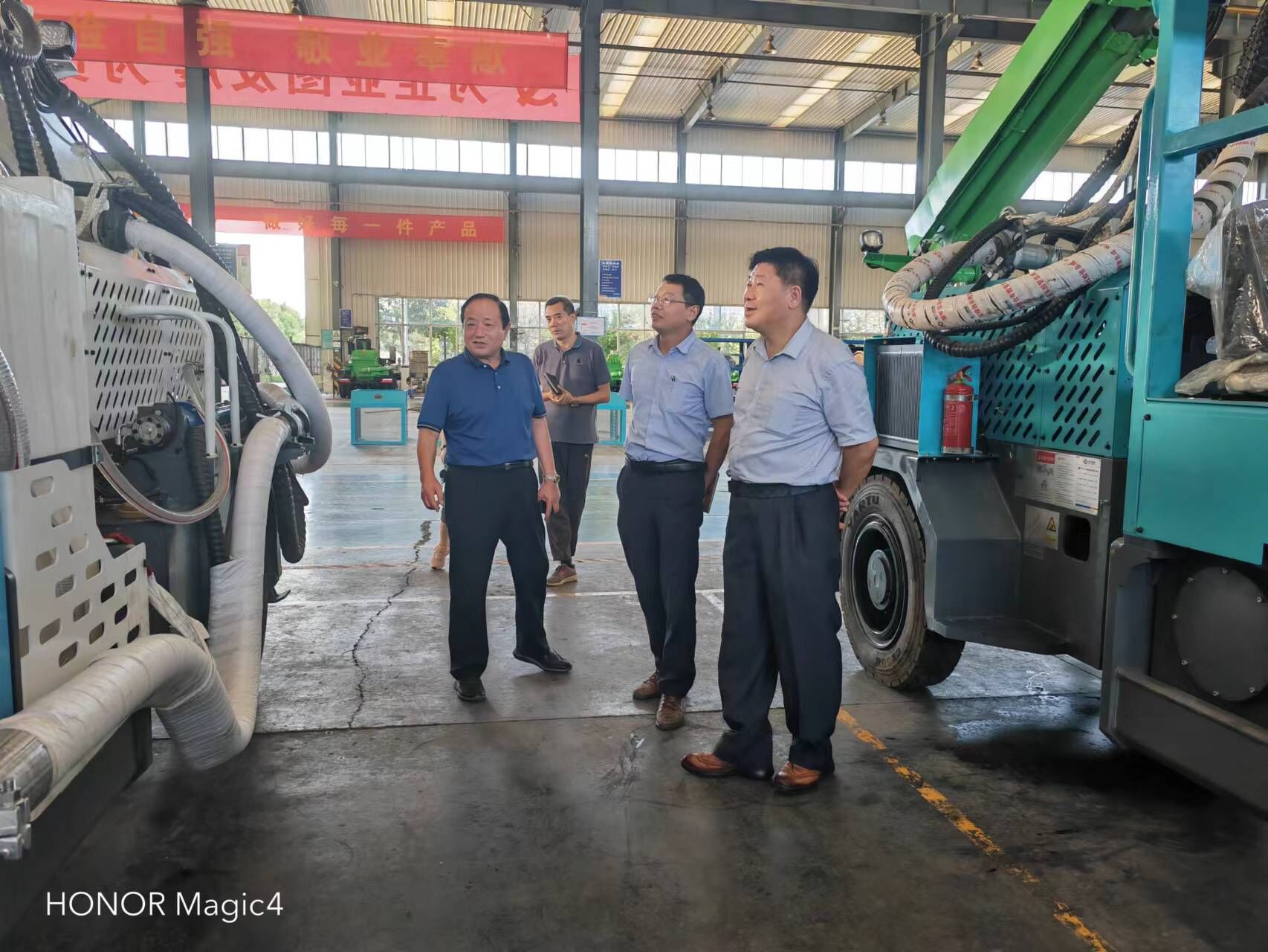 2022年9月6日下午,白露節氣的前一天,中國工程機械工業協會混凝土機械分會會長、路面與壓實機械分會會長、中國國家標準化管理委員會混凝土機械分技術委員會主任委員符忠軒、劉娟副秘書長、路面與壓實機械分會副秘書長王金利一行來到河南省耿力工程設備有限公司走訪調研,受到河南耿力黨支部書記萬濤、副總經理遠見、技術部部長王春建、機械室主任凌永宏、財務部部長孫志杰以及辦公室主任劉鵬毅等的熱情接待。